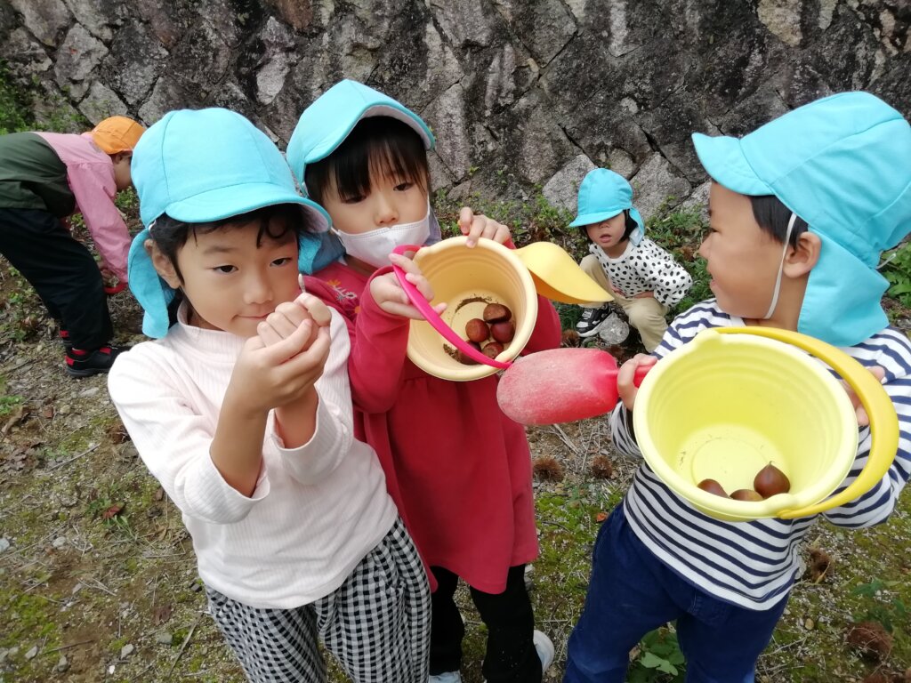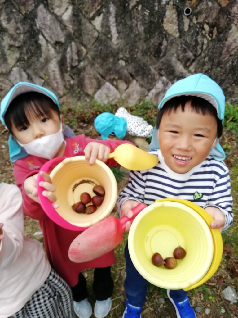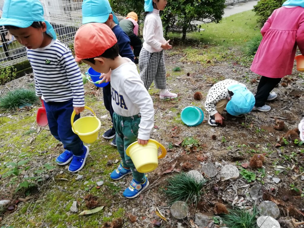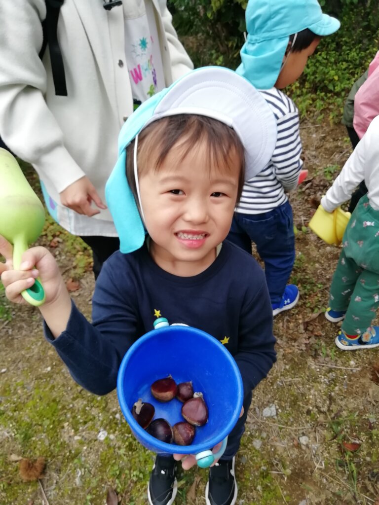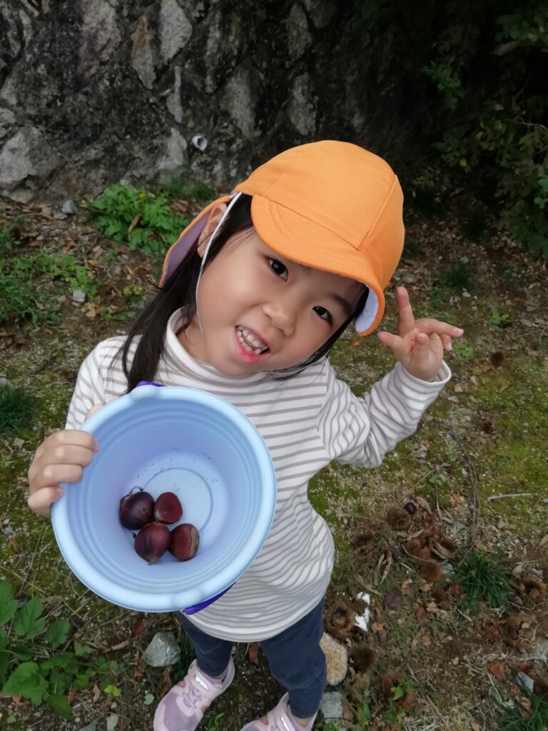子どもたちの様子🌰 投稿日 2025-11-17 著者 staff カテゴリー ブログ カテゴリー あしび園イベント カテゴリー 園児の様子 なんと!園庭にくりが落ちてるぞ~~!! ご近所さんのくりの木からおちてきたみた~い✨🤩 園におちてきた分を拾ってもいいですか?とお隣の方へご連絡したところ、快くOKいただきました👏✨ ありがとうございます!😌 いっぱい拾えたよ~~!!(*^-^*)✨ わたしはさなぎもひろったよ~✨ 大人になったらどんな姿になるのかな?😊 たくさんひろったね💓 園庭には、たくさんのドングリも落ちてるよ! 「わたちは両手に持って離さないぞ💓」 園庭には、秋がいっぱい! 毎日たくさん秋を探して遊んでいます☺