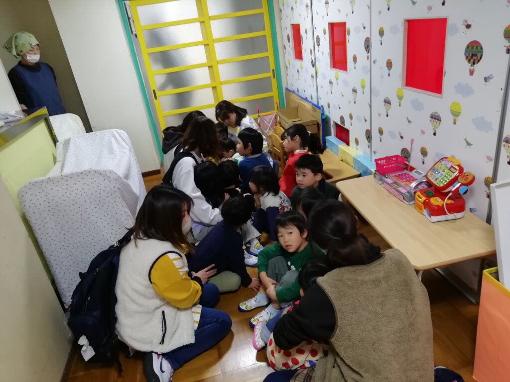 突然の訓練にも関わらず、子どもたちは保育者の話をよく聞いて、