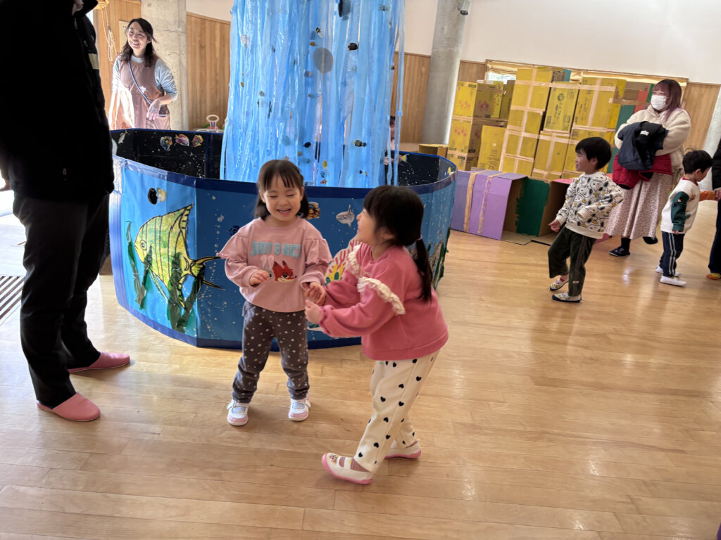 別館ホールでは、大好きな段ボール遊びを用意していました!