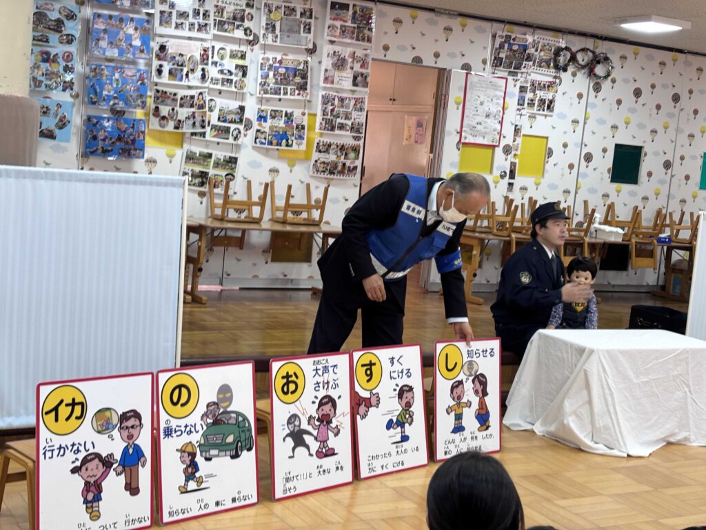 その後ホールにて、防犯についてのお話を保護者の方も一緒に聞きました🙋‍♀️