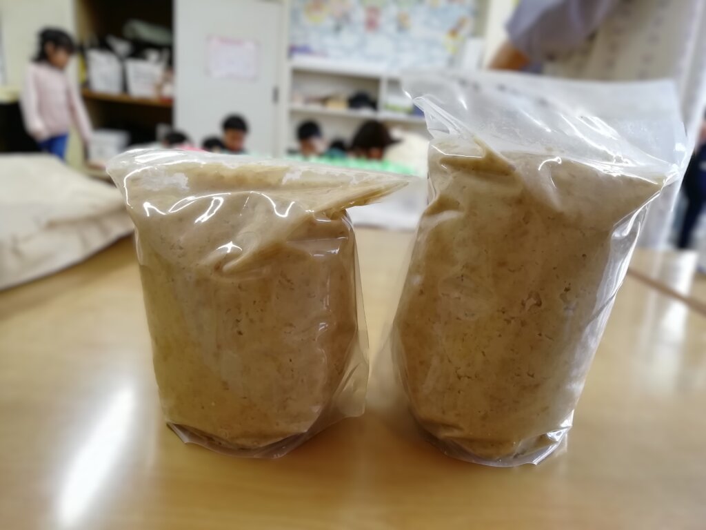 4.5歳クラスの保育参加で行う予定だったお味噌つくりを、先日行いました!