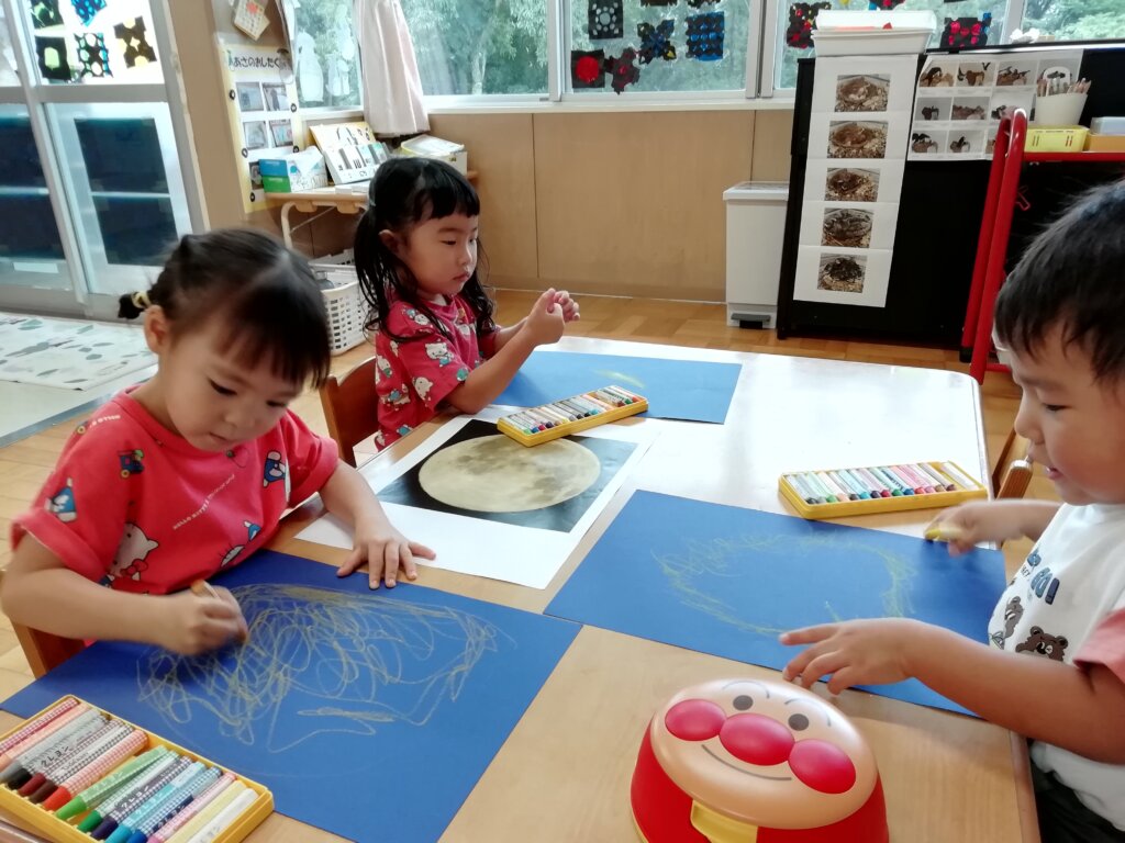 お月様ってよくみると、黒いところがあったり、ボコボコしてるところがあるんだよ~~!