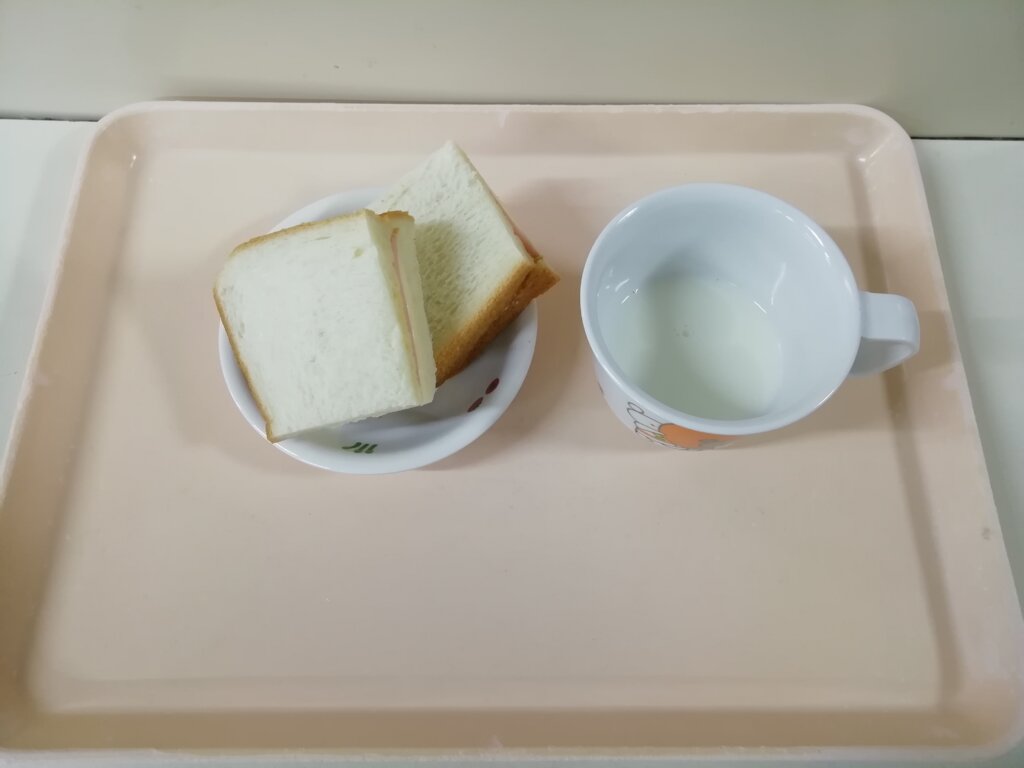 おやつ:牛乳・ハムチーズサンド🥪