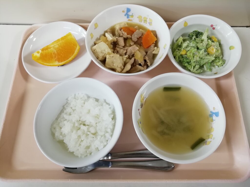 本日(11/4)の給食とおやつ 投稿日 2025-11-04 著者 staff カテゴリー あしび保育園の給食・おやつ メニュー:ご飯・みそ汁・肉豆腐・野菜のごまマヨネーズ和え・オレンジ おやつ:ピザトースト🍕・牛乳