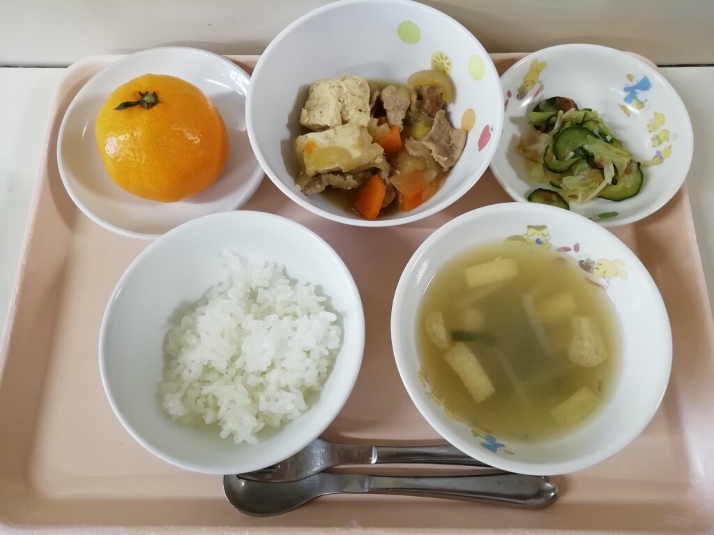 本日(11/17)の給食とおやつ 投稿日 2025-11-17 著者 staff カテゴリー あしび保育園の給食・おやつ メニュー:ご飯・みそ汁・肉豆腐・梅おかか和え・みかん🍊 おやつ:牛乳・ハムチーズサンド🥪