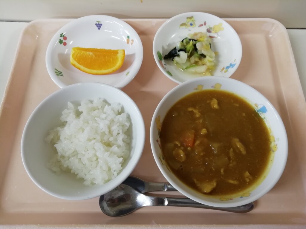 本日(11/21)の給食とおやつ 投稿日 2025-11-21 著者 staff カテゴリー あしび保育園の給食・おやつ メニュー:ポークカレーライス・白菜とツナのサラダ・オレンジ おやつ:アメリカンドッグ・牛乳