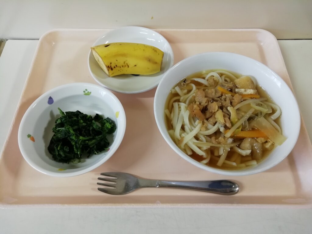 メニュー:けんちんうどん・磯和え・バナナ🍌