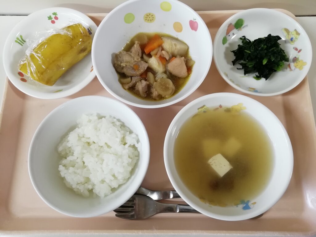 本日(1/28)の給食とおやつ 投稿日 2026-01-29 著者 staff カテゴリー あしび保育園の給食・おやつ メニュー:ご飯・みそ汁・筑前煮・ほうれん草の磯和え・バナナ🍌 おやつ:牛乳・ツナパン