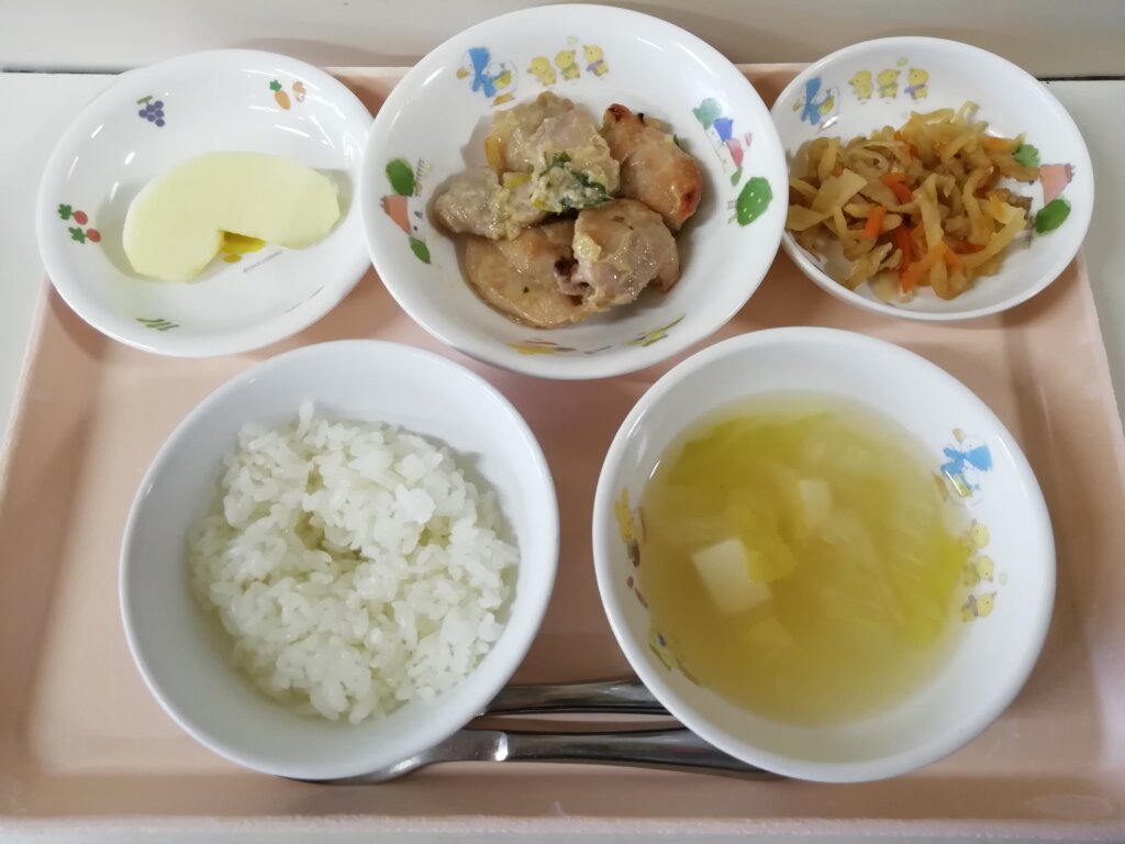 本日(2/9)の給食とおやつ 投稿日 2026-02-09 著者 staff カテゴリー あしび保育園の給食・おやつ メニュー:ご飯・みそ汁・鶏肉のねぎみそ焼き・切り干し大根の煮付け・リンゴ🍎 おやつ:ジャムサンド・牛乳