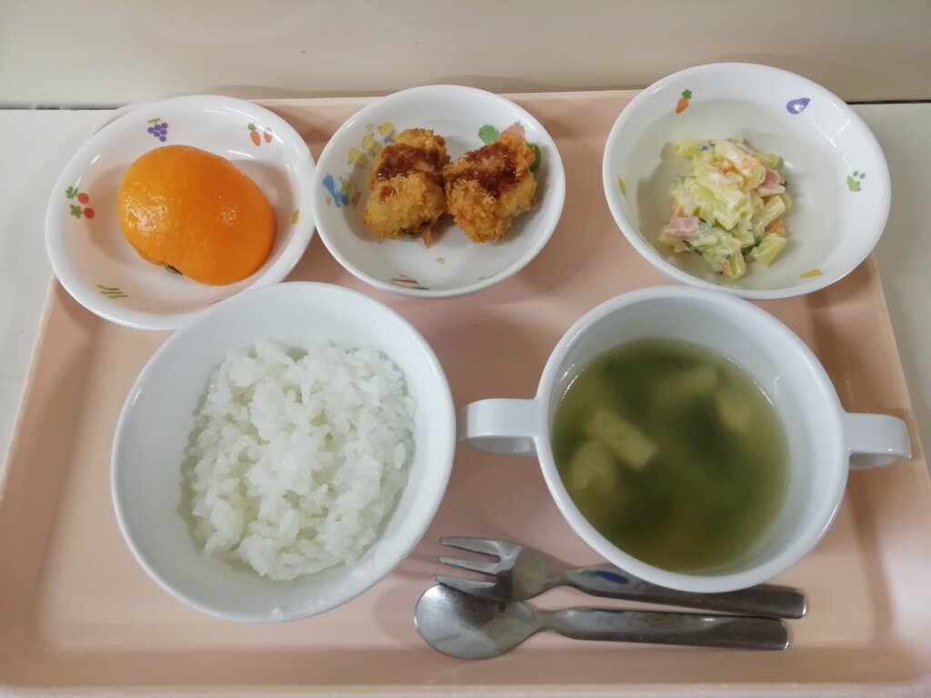 本日(2/27)の給食とおやつ 投稿日 2026-02-27 著者 staff カテゴリー あしび保育園の給食・おやつ メニュー:ご飯・みそ汁・カレイのフライ・マカロニサラダ・みかん おやつ:チーズ蒸しパン・牛乳