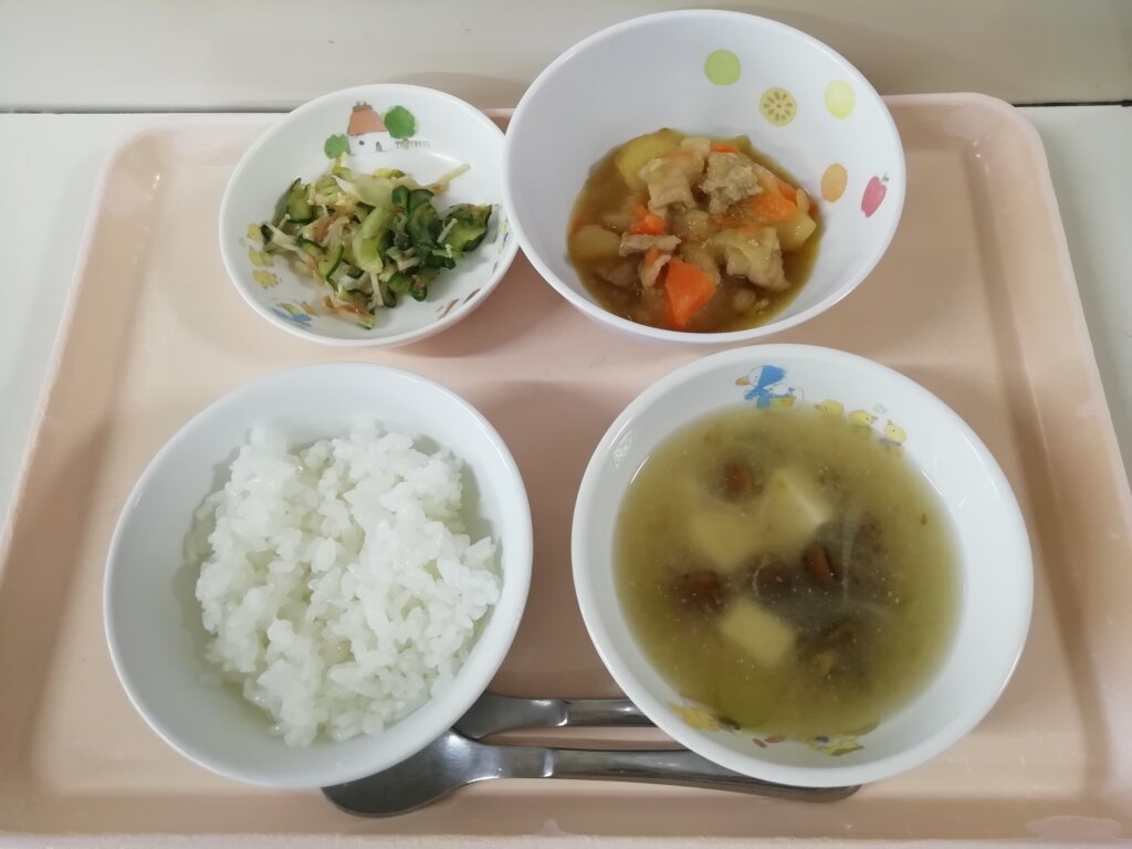 メニュー:ご飯・みそ汁・肉じゃが・梅おかか和え