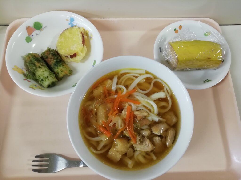 本日(3/5)の給食とおやつ 投稿日 2026-03-05 著者 staff カテゴリー あしび保育園の給食・おやつ こすもす組リクエスト⭐️メニュー:けんちんうどん・ちくわの磯辺揚げ・バナナ🍌 おやつ:手作りプリン🍮